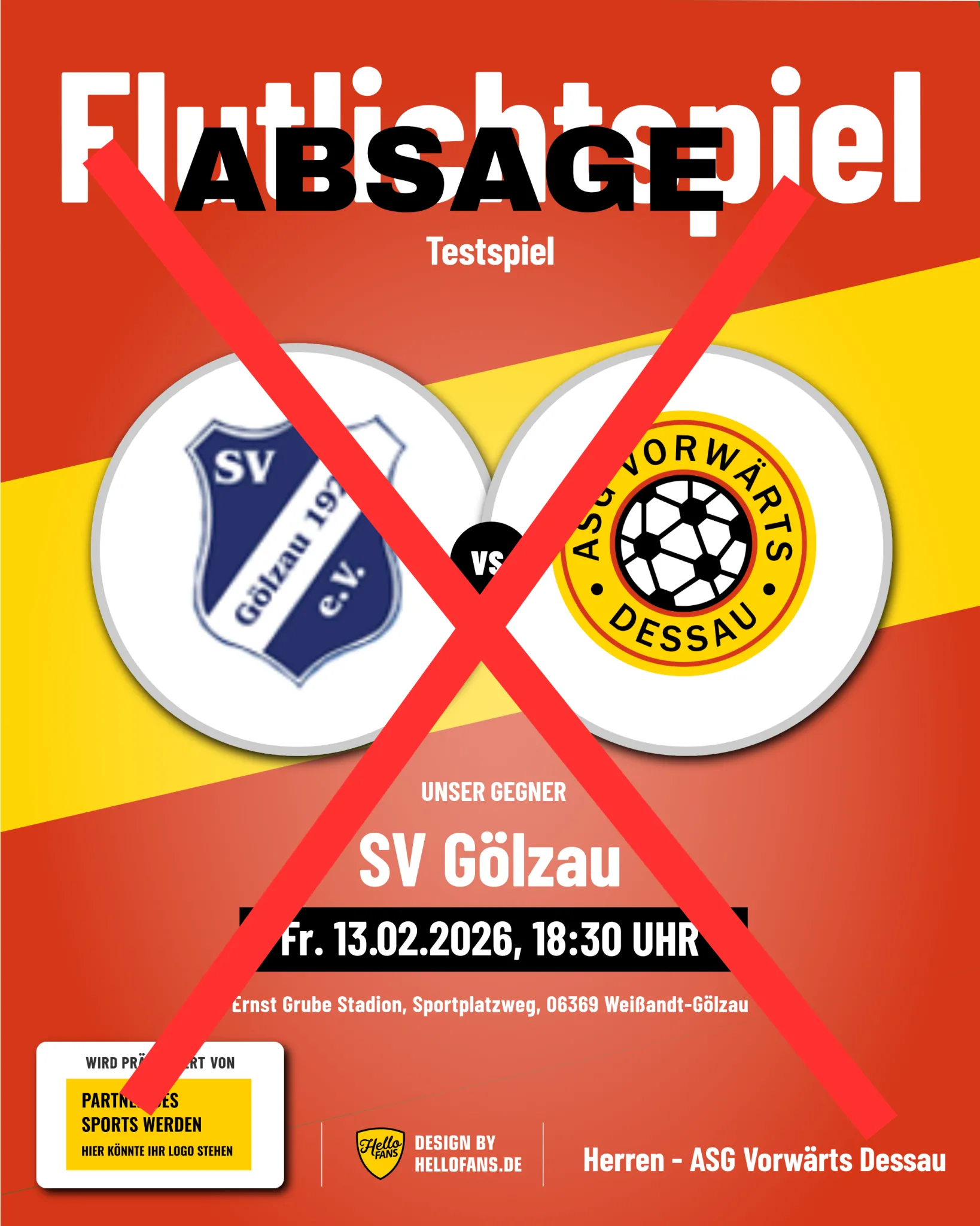 Auch das für morgen geplante Testspiel in Gölzau kann leider nicht stattfinden. Der Boden ist weiterhin gefroren. Zusammen mit den (angesagten) Regenfällen ist eine Austragung unmöglich.